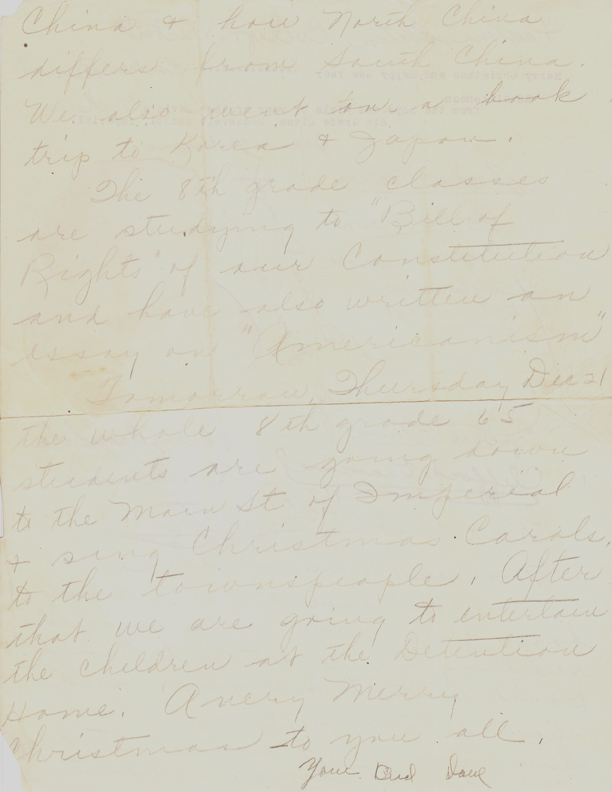 Letter Back from Uncle David Fulwiler's Class Circa 1950